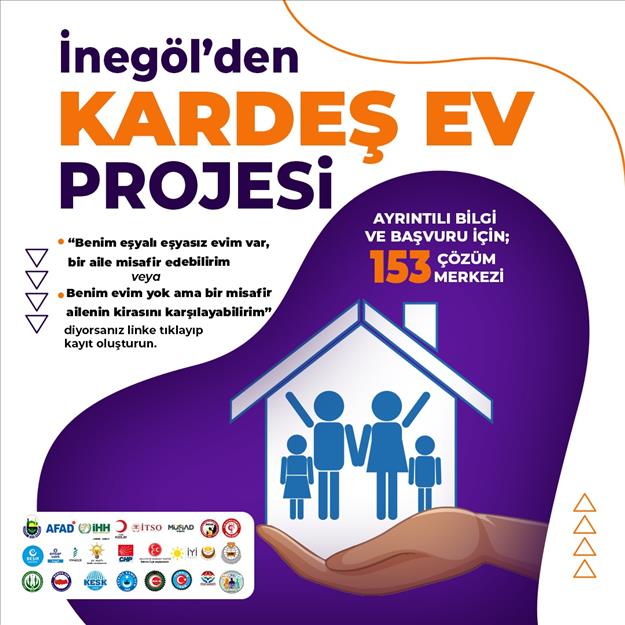Öte yandan, kampanyaya destek veren kurum, kuruluş, siyasi parti ve STK’lar da açıklandı. Buna göre; İnegöl Belediyesi, AFAD, İHH, Kızılay, İTSO, MÜSİAD, İNDAK, İlim Yayma Cemiyeti, Ensar Vakfı, Beşir Derneği, İrfan Gençlik Spor ve İzcilik Kulübü, AK Parti, CHP, MHP, İYİ Parti İnegöl İlçe Başkanlıkları, İnegöl Kültür Vakfı, AHİD, İHMED, Memur-Sen, KESK, Türkiye Kamu-Sen, Hak-İş, Türk-İş, İyilik Hareketi ve İnegöl Kent Konseyi katkılarıyla “Kardeş Ev” kampanyasının gerçekleştirileceği ifade edildi.