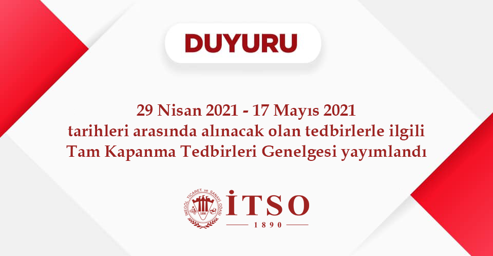 29 Nisan 2021 Perşembe günü saat 19.00'dan itibaren 17 Mayıs 2021 Pazartesi günü saat 05.00'e kadar sürecek olan tam kapanma döneminde ülke genelini kapsayacak şekilde aşağıdaki tedbirlerin alınması gerektiği değerlendirilen genelgede, şu ifadelere yer verildi: